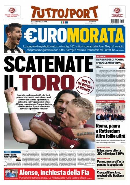 Tuttosport parla del Torino che dopo il due a due dell’andata contro l’Athletic Bilbao cercheranno l’impresa in Spagna.