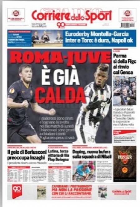 Il Corriere dello Sport parla del match tra Roma e Juventus che si giocherà lunedì sera. Una partita già incandescente.