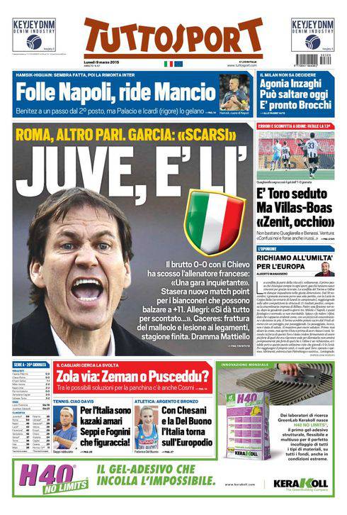 Tuttosport parla della Juventus che oggi può dare l’allungo decisivo allo Scudetto vincendo contro il Sassuolo.