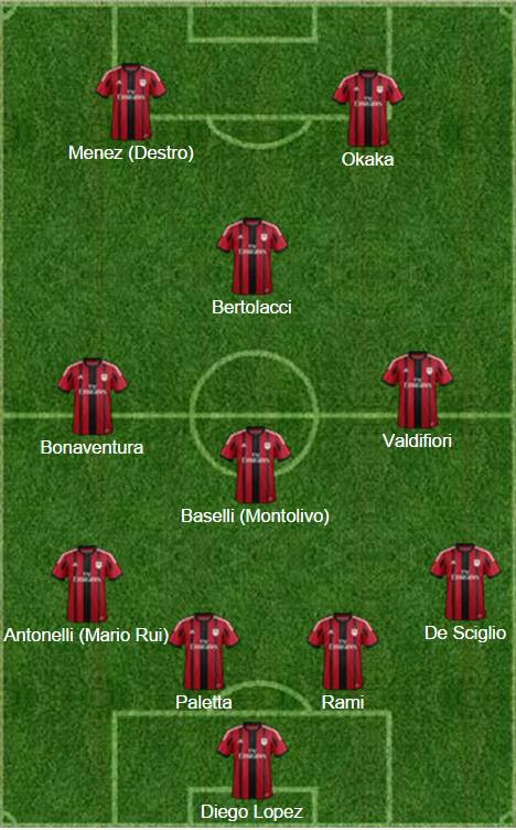 Nel 4-3-1-2, in porta Diego Lopez avrebbe grandi chance di essere confermato titolare. In difesa a sinistra Antonelli rischierebbe il ballottaggio con Mario Rui, terzino sinistro attualmente all’Empoli ma che, come detto, Sarri potrebbe portare a Milano; dalla parte opposta De Sciglio tornerebbe a coprire la corsia destra mentre la coppia di centrali sarebbe formata da Paletta e Rami. In mezzo al campo ci sarebbero diversi volti nuovi da mettere in conto: con Baselli playmaker a contendere il ruolo a Montolivo potrebbero trovare spazio Valdifiori e Bonaventura. Il ruolo di trequartista spetterebbe quindi a Bertolacci il quale avrebbe il compito di supportare il tandem offensivo composto da uno tra Menez o Destro e Okaka. Basterà un Milan giovane e italiano per riaprire un ciclo vincente?