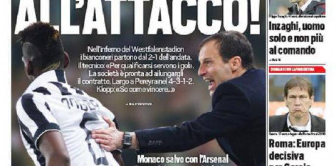 Anche Tuttosport sprona la Juventus ad affrontare la trasferta di Dortmund in maniera combattiva per superare il turno.