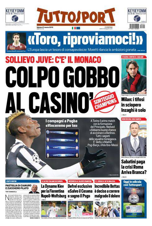 Su Tuttosport si parla del sorteggio dei quarti di finale per la Juventus che pesca il Monaco, l’avversario più abbordabile.
