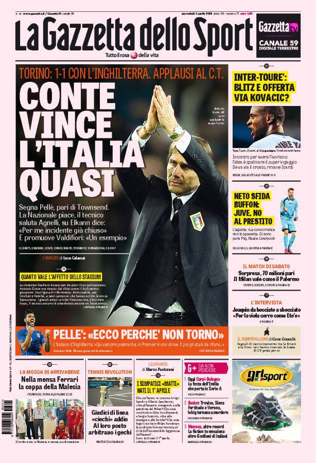 Applausi a Conte da parte dello Juventus Stadium, l’Italia va vicino al trionfo contro l’Inghilterra di Hodgson.