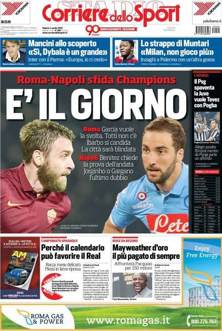 Il Corriere dello Sport parla del match tra Roma e Napoli, super sfida in ottica Champions League. Partita importantissima per entrambi.