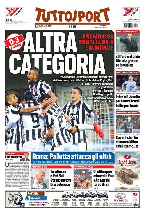 Ovviamente anche Tuttosport rende merito all’impresa della Juventus che batte tre a zero la Fiorentina al Franchi.