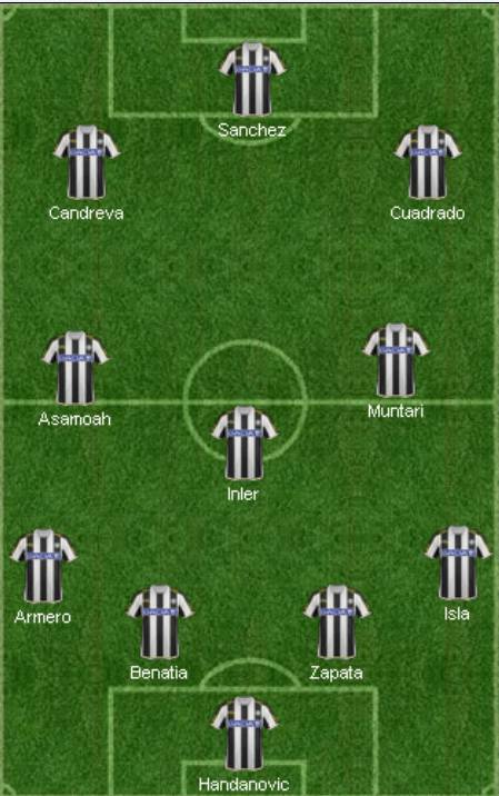 In porta non può non trovare spazio l’attuale interista Samir Handanovic: lo sloveno, prelevato per appena 40 mila euro dal Domzale nel 2004, è stato ceduto nel 2012 al club meneghino per 12 milioni di euro più la metà del cartellino di Faraoni. In difesa troviamo la coppia Benatia-Zapata oggi rispettivamente tesserati con Roma e Milan: entrambi furono acquistati dai friulani nel 2005 dal Clermont e dal Cali. Spesa totale? 500 mila euro a testa. Il colombiano fu poi ceduto al Villareal per 9 milioni di euro mentre il marocchino si è trasferito alla Roma per circa 13,5 milioni di euro (oggi diversi club europei sono sulle sue tracce). Sugli esterni trovano spazio Armero, non voluto dal Parma per 200 mila euro, e Isla, arrivato in punta di piedi a Udinenel 2007 e acquistato dalla Juventus nel 2012 per circa 18 milioni di euro. Passiamo al centrocampo. Inler fu pagato dai bianconeri appena 2 milioni di euro e ceduto al Napoli per 16 mentre Muntari, prelevato giovanissimo e fatto crescere in prima squadra, fu ceduto al Portsmuth per 7 milioni di sterline. Asamoah è stato invece ceduto alla Juventus per 18 milioni di euro: era arrivato in Italia per 1 milione di euro. Eccoci ora all’attacco: Cuadrado è costato caro alla Fiorentina: più di 21 milioni di euro. L’Udinese riuscì a portarlo in Italia dal Medellìn con una vera e propria magia di mercato. Oltre a Candreva, riscattato dalla Lazio dopo un lungo girovagare in varie squadre, spicca il nome di Alexis Sanchez. L’Udinese acquistò il cileno dal Deportes Cobreloa per 3 milioni di euro nel 2007; il Barcellona arriverà a pagarlo 26 milioni di euro più 11,5 di bonus.