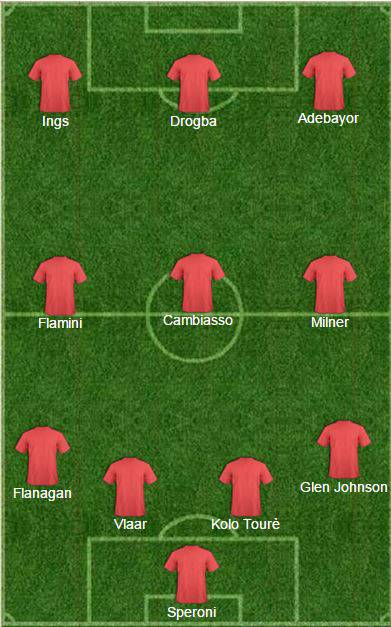 Tra i pali, troviamo l’estremo difensore del Crystal Palace Julian Speroni; la difesa è un misto di talento ed esperienza con gli esterni del Liverpool Johnson e Flanagan, con Kolo Tourè, che non ha bisogno di certo di presentazioni, affiancato dall’olandese Vlaar; in mediana, due vecchie conoscenze della Serie A come Flamini e Cambiasso, vengono affiancate da uno che il nostro campionato potrebbe assaggiarlo a breve come Milner, visti i contatti in corso con Roma, Juve ed Inter; attacco sensazionale con Didier Drogba ed Emmanuel Adebayor, insieme alla promessa del calcio britannico, Ings, classe 1992.