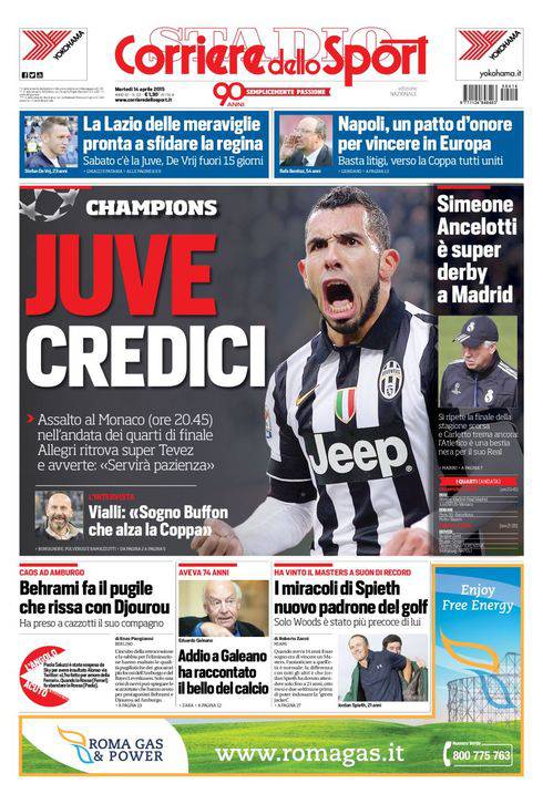Il Corriere dello Sport parla del match tra la Juventus e il Monaco in programma questa sera in Champions League a Torino.