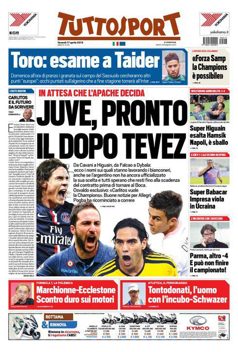 Su Tuttosport si parla del dopo Tevez in casa Juventus con il possibile arrivo di un giocatore importante.