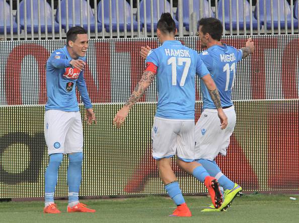 NAPOLI (4-2-3-1): Andujar 6; Maggio 5,5, Albiol 6,5, Koulibaly 6,5, Strinic 6,5; Jorginho 6, Gargano 6,5; Callejon 7 (dal 68′ Mesto), Hamsik 7,5 (dal 56′ Gabbiadini 6,5), Insigne 6,5; Higuain 6 (dal 62′ Duvan 6). A disp.: Rafael, Colombo, Ghoulam, Britos, Henrique, Inler, Mertens. All.: Zeman.