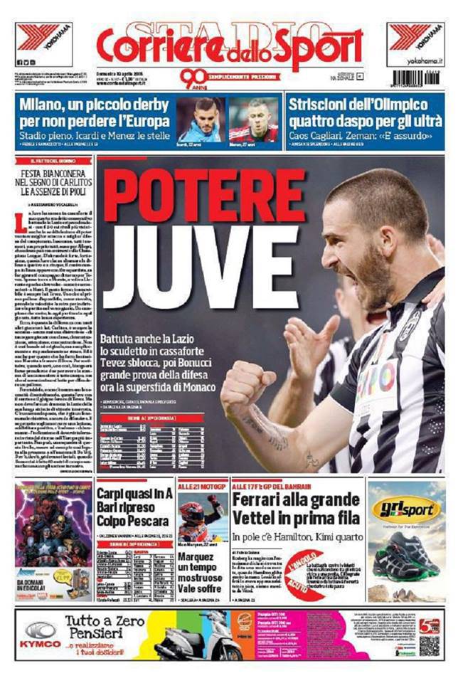 Battuta anche la Lazio, lo scudetto è in cassaforte. Sblocca Tevez, poi Bonucci. Grande prova della difesa. Ora la supersfida di Monaco. Milano, un piccolo derby per non perdere l’Europa. Striscioni per l’Olimpico: quattro daspò per gli ultrà.