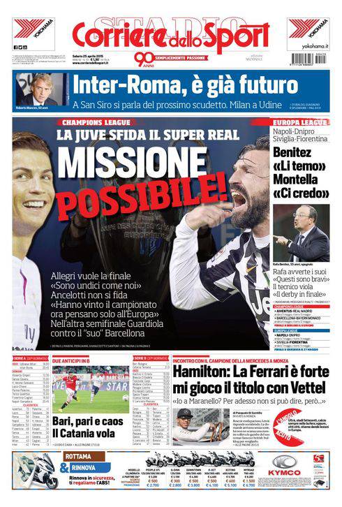 Sul Corriere dello Sport si parla della sfida tra Juventus e Real Madrid per le semifinali di Champions League.