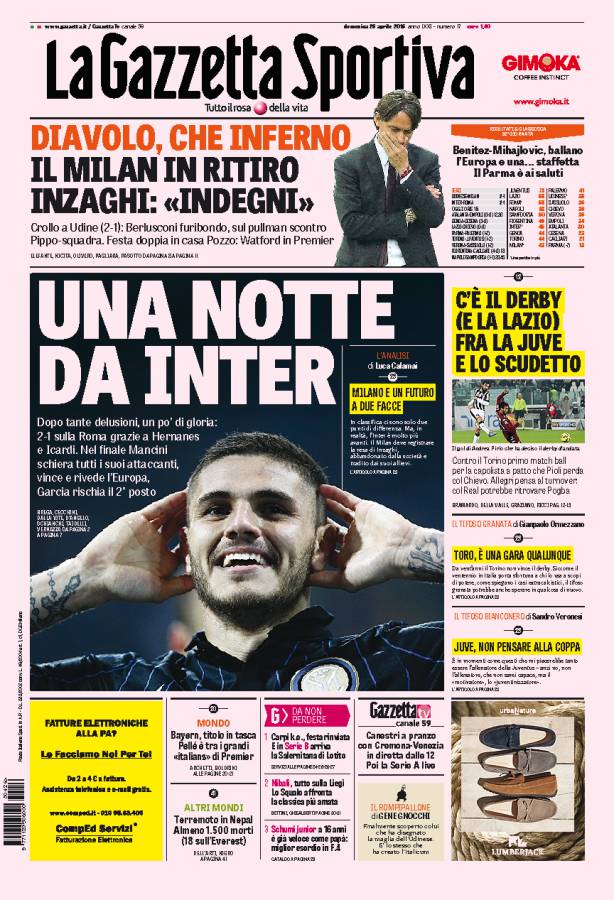Diavolo che inferno. Il Milan in ritiro, Inzaghi: “Indegni”. Crollo a Udine (2-1): Berlusconi furibondo. Sul pullman scontro Pippo-squadra. Festa doppia in casa Pozzo. Watford in Premier.