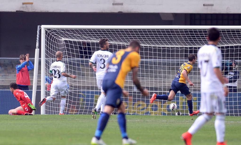 Hellas Verona (4-3-3): Rafael 4; Pisano 6, Márquez 6, Moras 5, Agostini 6; Sala 6,5 (83′ Fernandinho sv), Obbadi 6, Greco 6,5; Juanito Gómez 7, Toni 8, Janković sv (14′ Valoti sv – 19′ Benussi 6,5). A disposizione: G. Rodríguez, Sørensen, Marques, Christodoulopoulos, Saviola, Brivio, Campanharo, Martić, Tachtsidīs. Allenatore: Mandorlini 7.