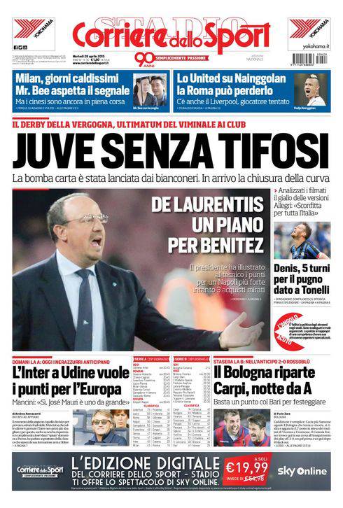 Il Corriere dello Sport rivela che la Juventus potrebbe perdere i propri tifosi nel match contro la Fiorentina per i fattacci del derby.