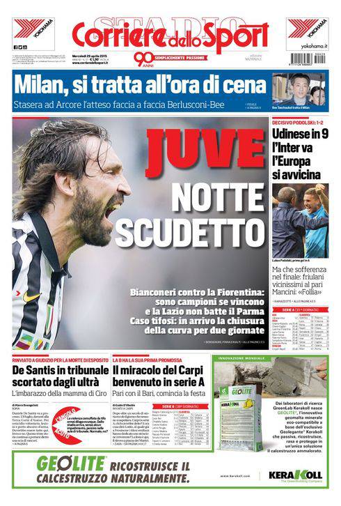 Il Corriere dello Sport ha parlato della Juventus che potrebbe vincere questa sera lo Scudetto in caso di vittoria.