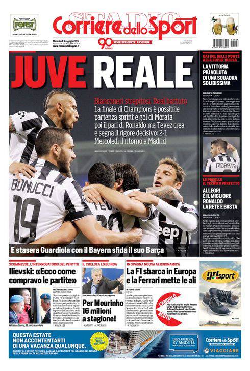 Anche il Corriere dello Sport celebra il due a uno della Juventus sul Real Madrid nell’andata delle semifinali di Champions.