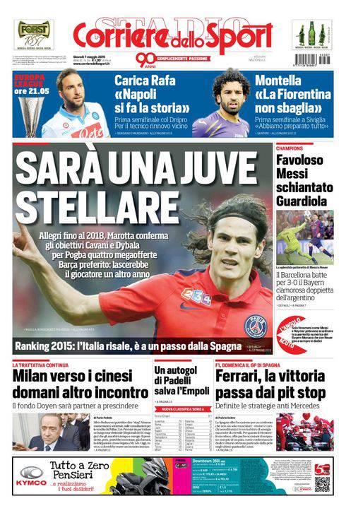Il Corriere dello Sport parla della Juventus che si prepara a rinforzare la squadra in maniera importante con l’arrivo di Cavani.