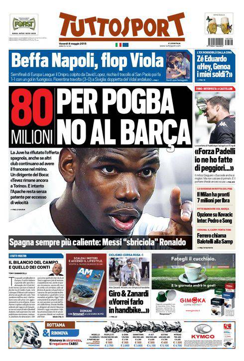 Su Tuttosport si parla dell’offerta del Barcellona per Pogba, una cifra vicina agli 80 milioni di euro, rifiutata dalla Juventus.