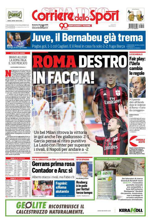 Roma, Destro in faccia. Un bel Milan ritrova la vittoria. In gol anche l’ex giallorosso: 2-1. Garcia pensa al ritiro punitivo. La Lazio con l’Inter per superare i rivali, il Napoli per andare a -2.