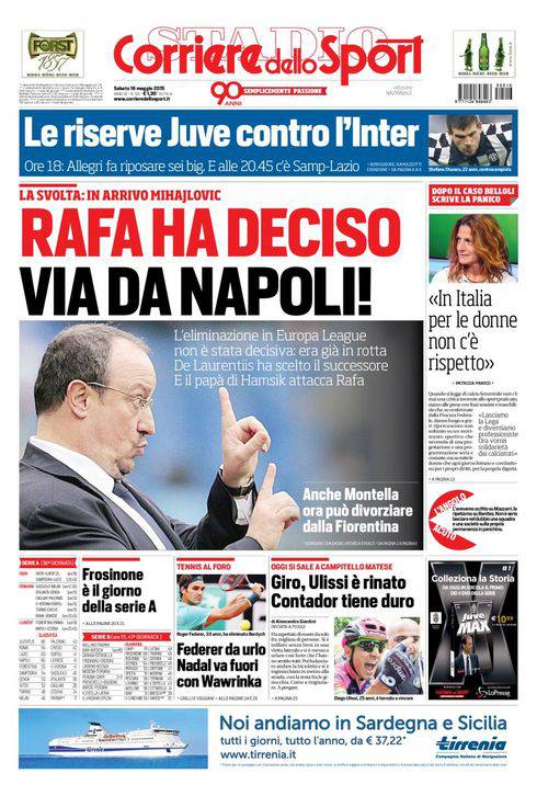 Il Corriere dello Sport parla di Benitez che ha deciso di lasciare il Napoli, pronto Sinisa Mihajlovic come sostituto.