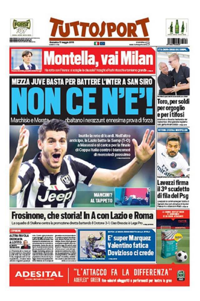 Marchisio e Morata rimontano i nerazzurri: ennesima prova di forza. Nell’altro anticipo, la Lazio batte la Sampdoria al Marassi e si carica per la finale di Coppa Italia.