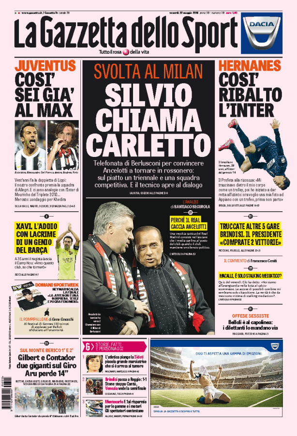 Svolta in casa Milan con Berlusconi che chiama Ancelotti per proporgli nuovamente la panchina del Milan per la prossima stagione.