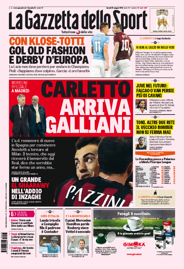 Il dirigente del Milan Galliani in volo verso Madrid per convincere Carlo Ancelotti a tornare al Milan nella prossima stagione.