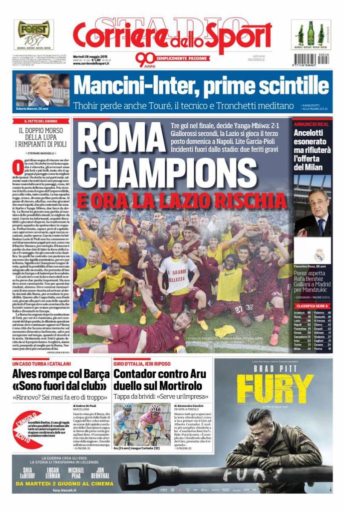 Anche il Corriere dello Sport parla della Roma che vince due a uno contro la Lazio e vola in Champions direttamente.