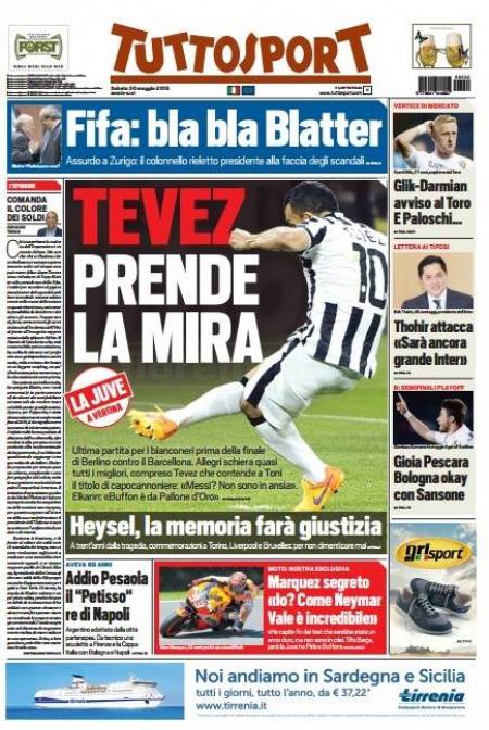 Su Tuttosport si parla di Tevez che quest’oggi contro il Verona sfiderà Toni per la classifica marcatori della Serie A.