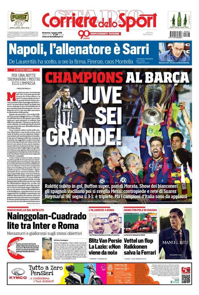 Il Barcellona conquista la Champions League contro una Juventus che ha lottato fino alla fine. Napoli, l’allenatore è Sarri. Nainggolan-Cuadrado, lite tra Inter e Roma.
