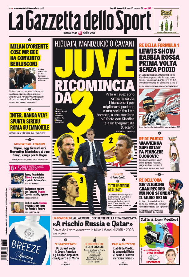 La Juventus potrebbe ripartire da un nuovo bomber, nel mirino ci sono Higuain, Cavani e Mandzukic. Uno di loro prenderà il posto di Tevez.