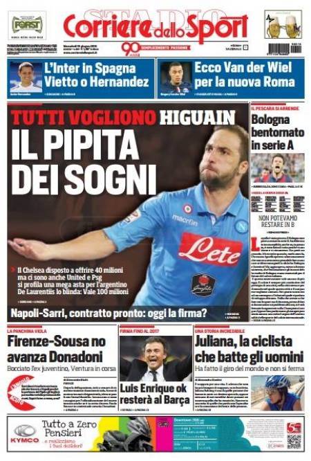Il Corriere dello Sport parla del futuro del Pipita Higuain che è nel mirino di diverse società straniere.