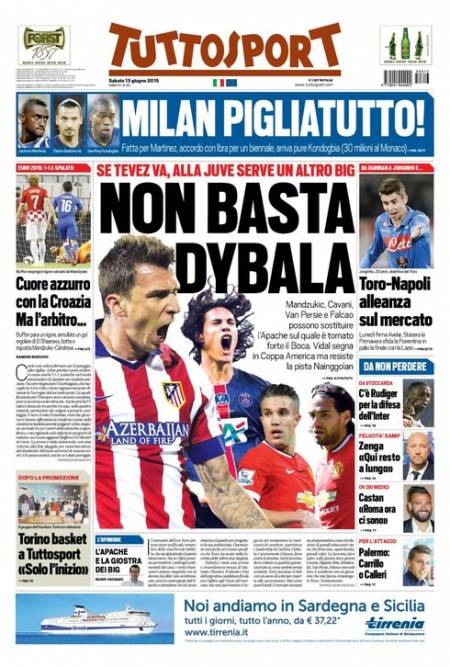 Su Tuttosport si parla del calciomercato della Juventus che potrebbe non fermarsi al solo Dybala. In caso di addio di Tevez potrebbe esserci l’arrivo di un Big.