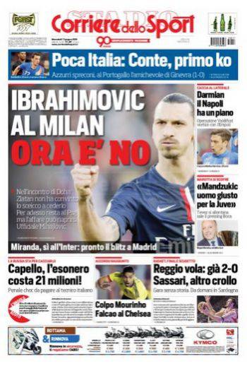 Il Corriere dello Sport rivela che per ora Zlatan Ibrahimovic rimarrà al Psg, non ci sarebbe infatti l’accordo per il suo arrivo a Milano.