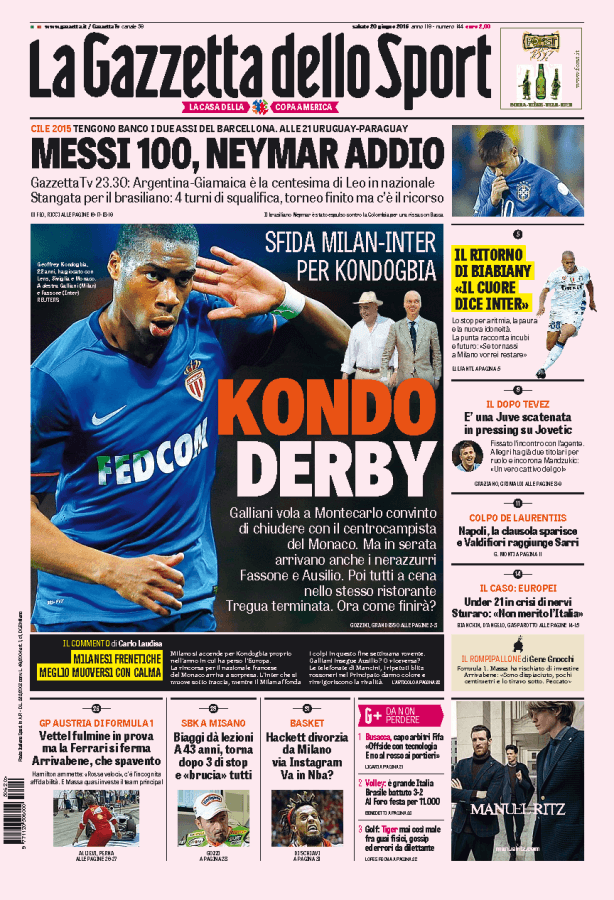Derby tra Milan e Inter per Kondogbia, centrocampista francese del Monaco che piace a tutte e due le milanesi.