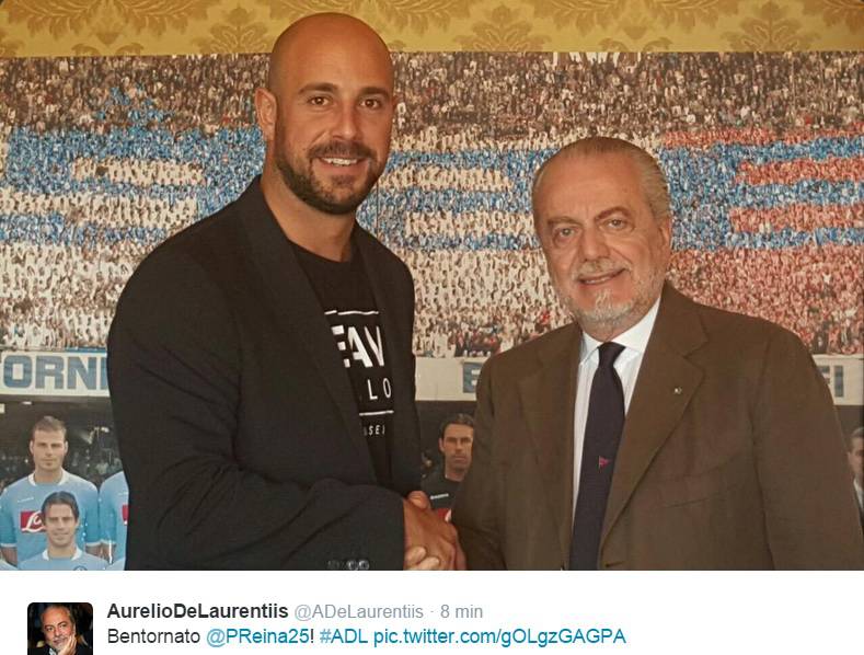 Ora è ufficiale. Pepe Reina torna al Napoli in vista della prossima stagione. Il club partenopeo ha reso noto l’affare postando il tweet di De Laurentiis sul proprio profilo ufficiale con l’estremo difensore spagnolo ed il presidente. Il Bayern Monaco ha salutato Reina sempre con un tweet.