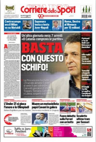 Duro il commento del Corriere dello Sport alla situazione in Serie B con molte partite truccate e gli arresti di Catania.