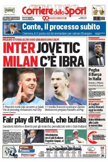 Il Corriere dello Sport parla di Inter e Milan che sono vicini a Jovetic e Ibrahimovic. Un mercato importante delle milanesi.