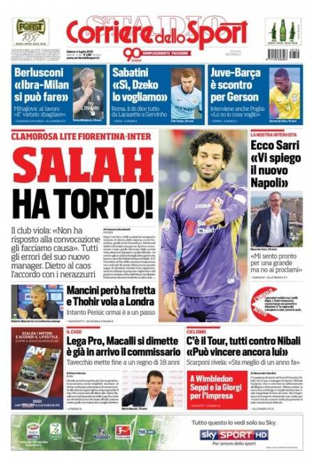 Il Corriere dello Sport parla di Salah e dei suoi problemi con la Fiorentina. Il club pronto a fargli causa.