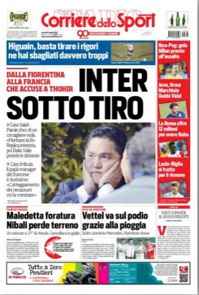 Il Corriere dello Sport parla dell’Inter che viene criticata sia dalla Fiorentina che dal padre di Imbula.