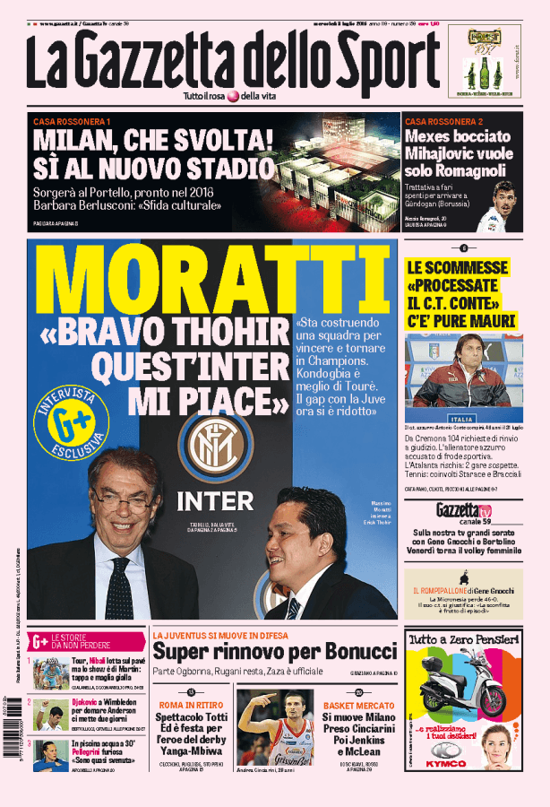 Intervista a Massimo Moratti da parte della Gazzetta dello Sport. L’ex presidente nerazzurro fa i complimenti a Thohir.