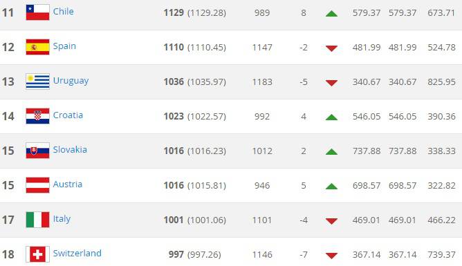 Arrivano notizie negative per l’Italia di Antonio Conte per quanto riguarda il Ranking Fifa. La Nazionale italiana infatti perde quattro posizioni passando dal 13esimo al 17esimo posto dietro alla Slovacchia e all’Austria. Un tonfo incredibile per gli azzurri che ultimamente non hanno inanellato risultati positivi per questo la classifica del Ranking non sorride. Cambi anche al vertice con l’Argentina che supera Germania e Belgio e vola al primo posto in classifica. Perde posizione anche il Brasile che dopo la deludente Copa America finisce al sesto posto in classifica.