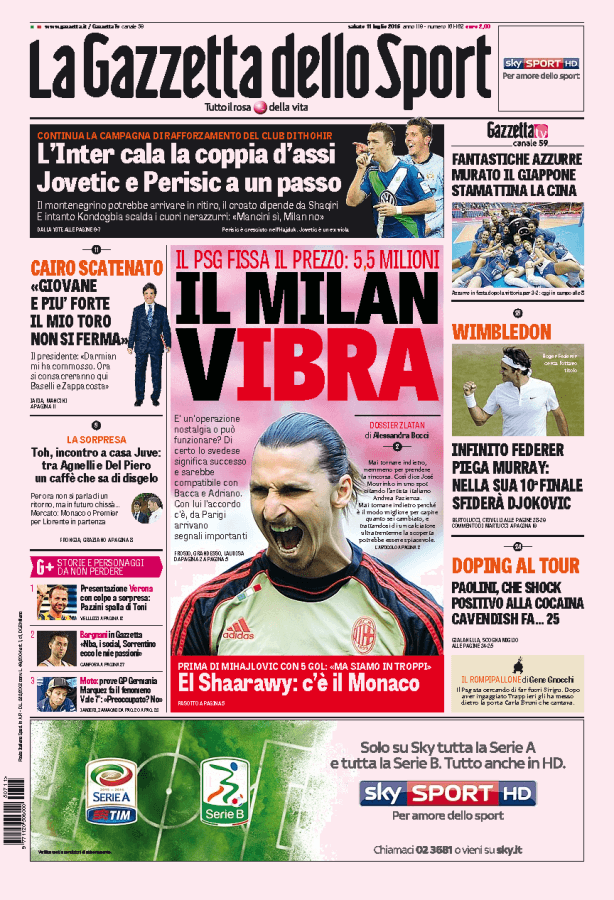 Il Psg fissa il prezzo per Zlatan Ibrahimovic, 5,5 milioni di euro. Il Milan punta a trovare subito l’accordo.