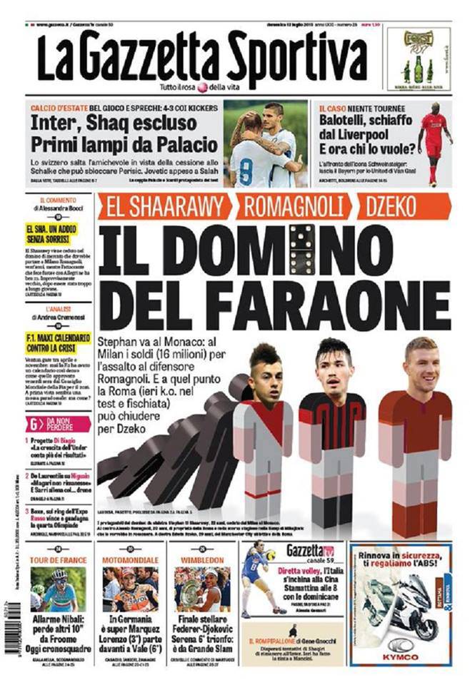 El Shaarawy va al Monaco: al Milan i soldi, 16 milioni, per l’assalto aldifensore Romagnoli. E a quel punto la Roma (ieri ko e fischiata)può chiudere per Dzeko. Inter, Shaqiri escluso. Primi lampi da Palacio. Balotelli, schiaffo del Liverpool. E ora chi lo vuole?