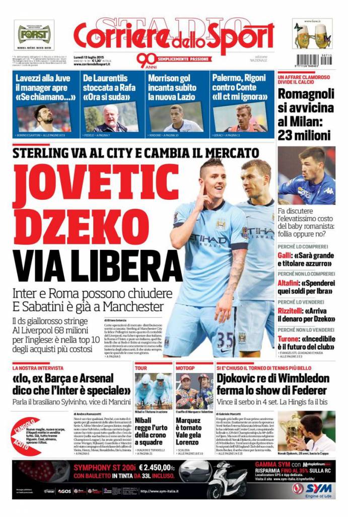 Il Corriere dello Sport parla di Jovetic e Dzeko che potrebbero andare via dal City dopo l’arrivo di Sterling.