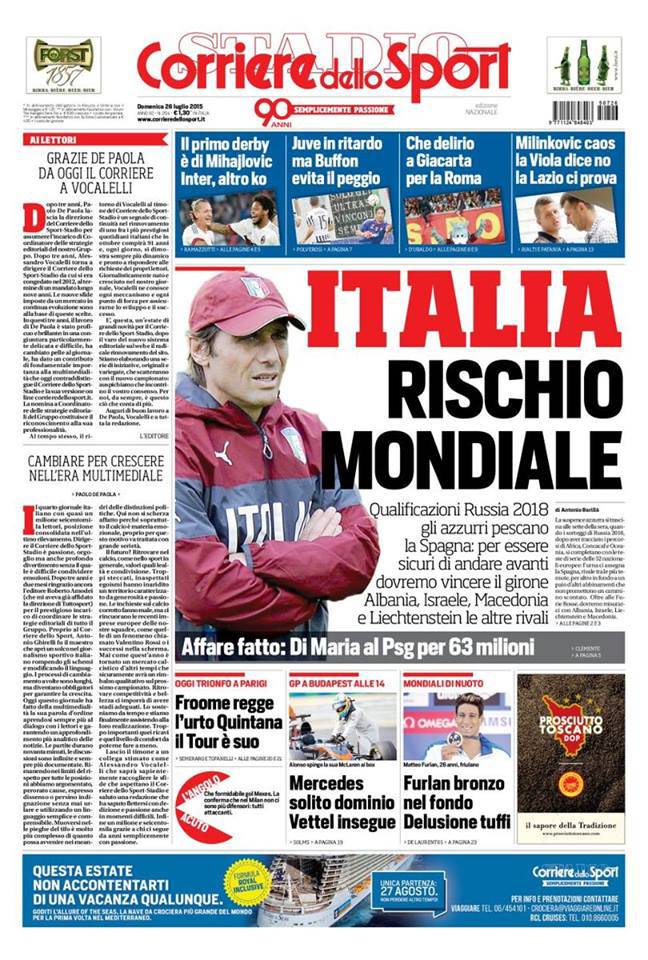 Qualificazioni Russia 2018, gli Azzurri pescano la Spagna: per essere sicuri di andare avanti dovremo vincere il girone. Albania, Israele, Macedonia e Liechtenstein le altre avversarie. Affare fatto: Di Maria al Psg per 63 milioni.
