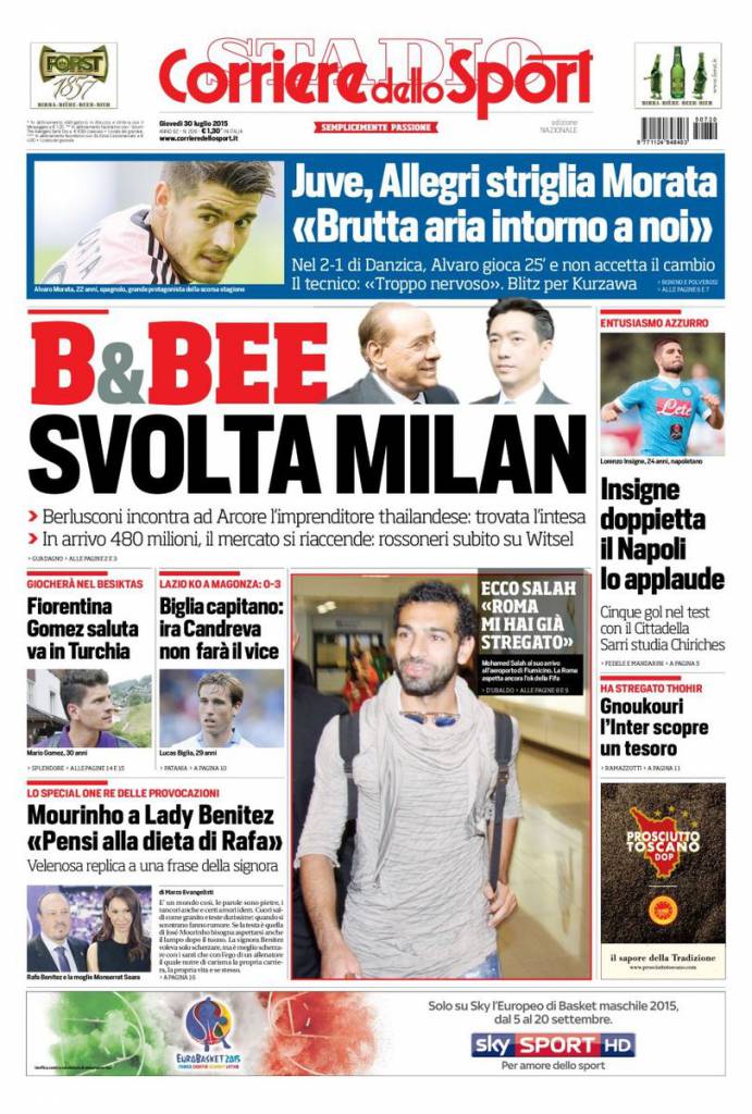Il Corriere dello Sport parla della svolta in casa Milan con l’arrivo di Mr. Bee e dei 480 milioni di euro.