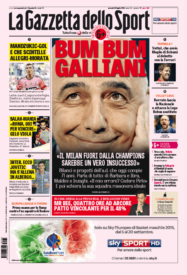 Oggi Adriano Galliani compie 71 anni e rilascia una lunga intervista alla Gazzetta dello Sport in cui parla di tutta la sua carriera.