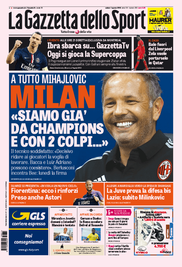 Intervista al tecnico del Milan Sinisa Mihajlovic che è convinto della squadra che potrebbe lottare per la Champions nella prossima stagione.